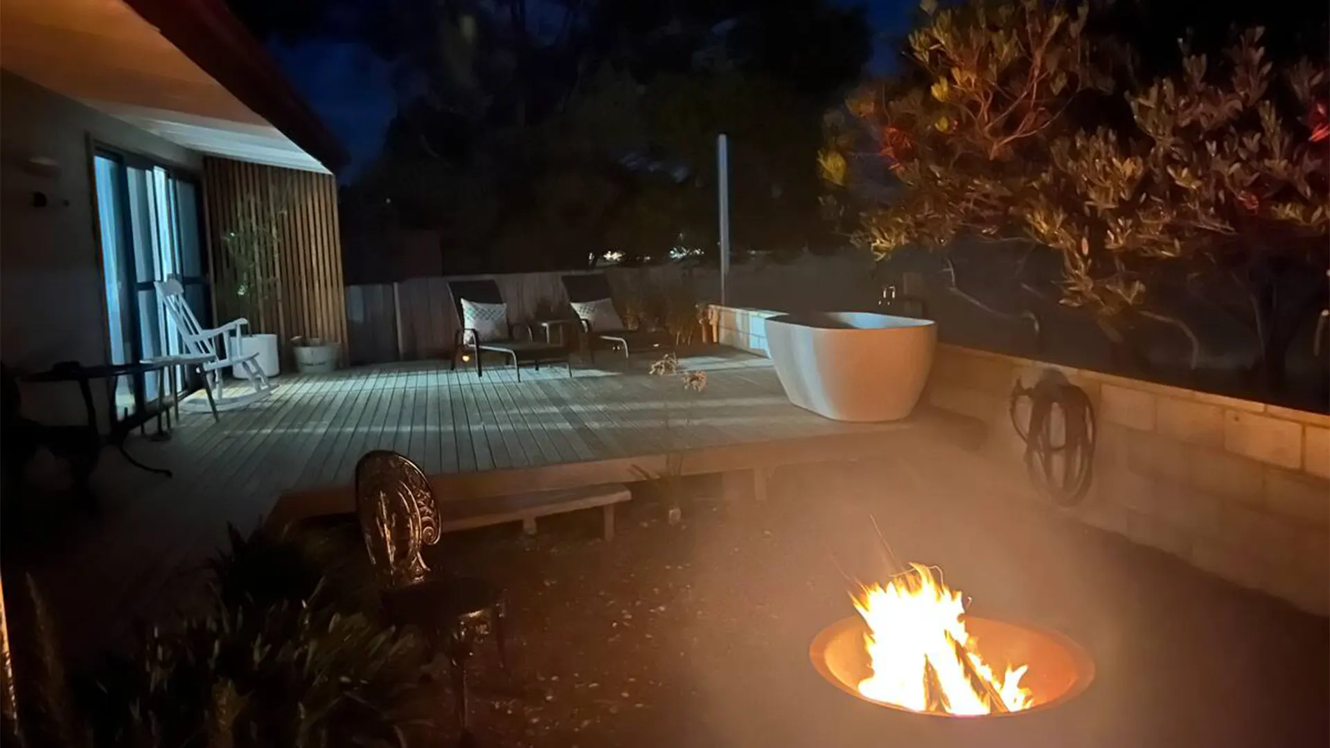 Guests can enjoy the outdoor bath and outdoor shower after a beach visit or day trip, adding a sense of indulgence that is rarely found in affordable stays. In the evenings, the fire pit becomes a natural gathering spot, perfect for unwinding under the Tasmanian sky.
